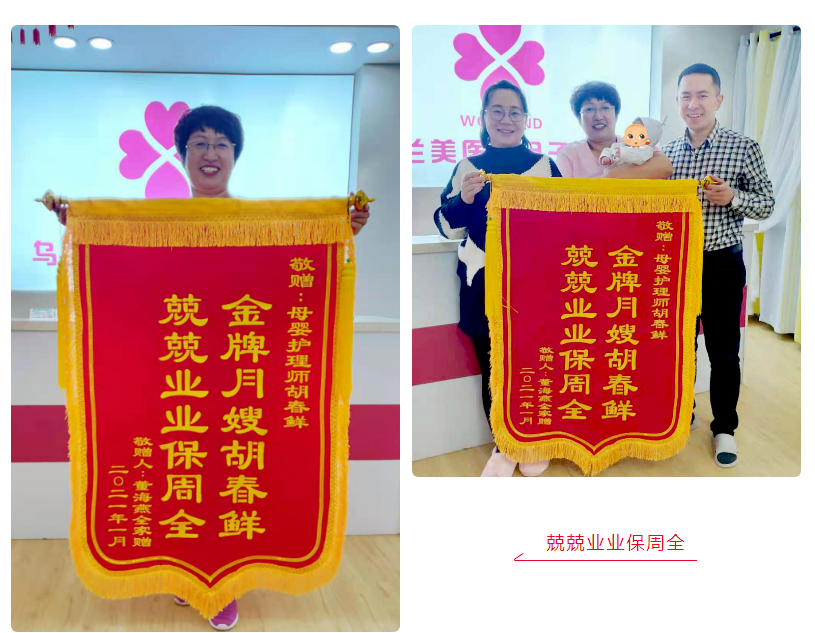 手捧錦旗的胡春鮮動容的說:“這本就是我的分內工作,是因為‘米勒媽媽’(寶媽)的活潑開朗,讓我們相處的更加融洽,也讓我的工作更好的開展!與此同時更要感謝烏蘭美醫(yī)養(yǎng)月子中心給我提供了事業(yè)發(fā)展的平臺,感謝我的每一位老師對我的幫助和指導,感謝大家給予我家一般的關懷和溫暖”。